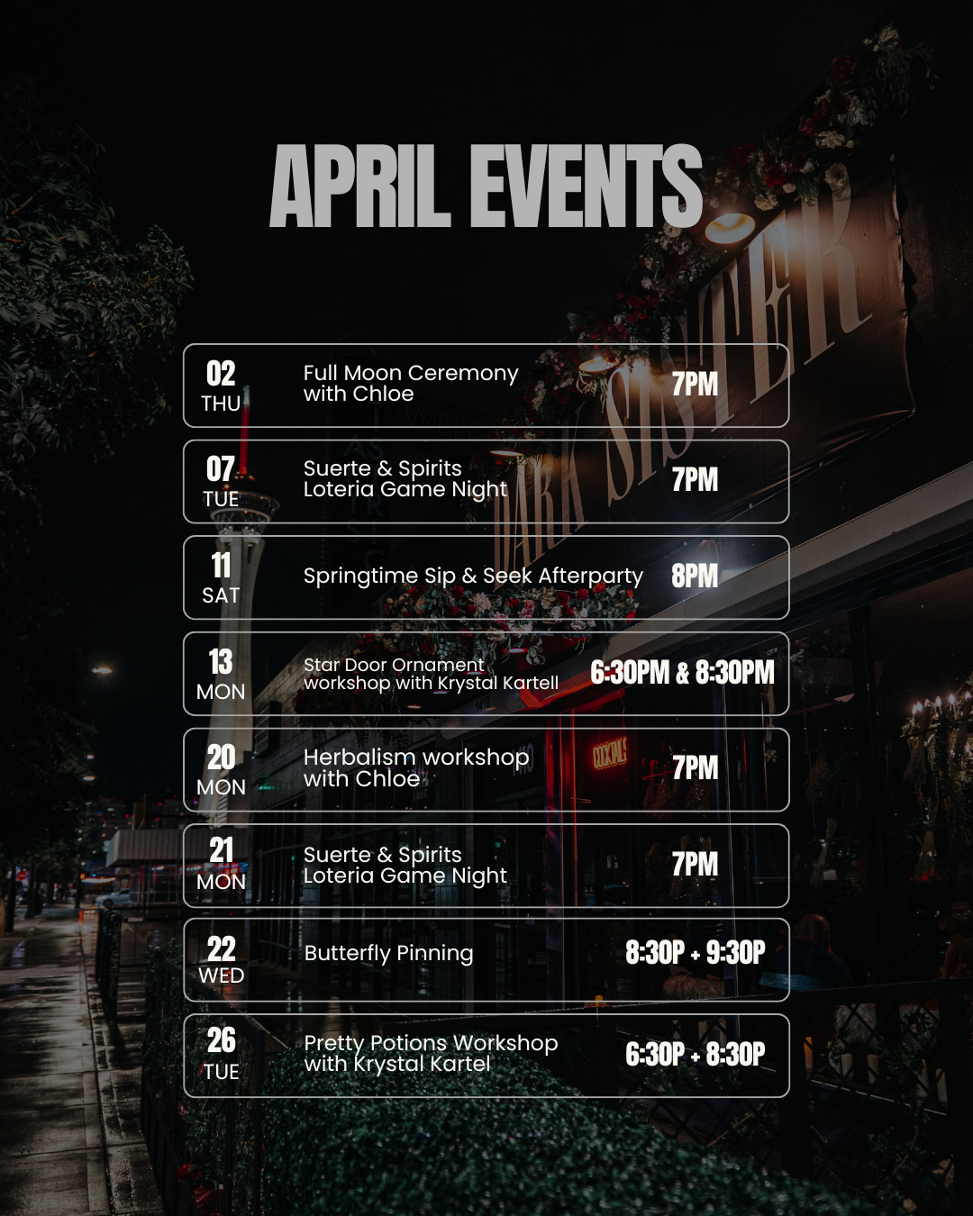 A few times a week we host a Tarot Reader at our bar. Audrey Fox does readings on Thursday & Saturdays at 7pm. Check our instagram for dates and for more information.